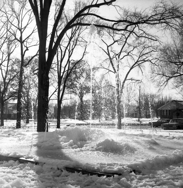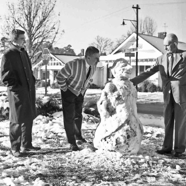 ![]() Barbara Jo Norman and Carl Griffis building a snowman in the Norman's front yard 1963. |